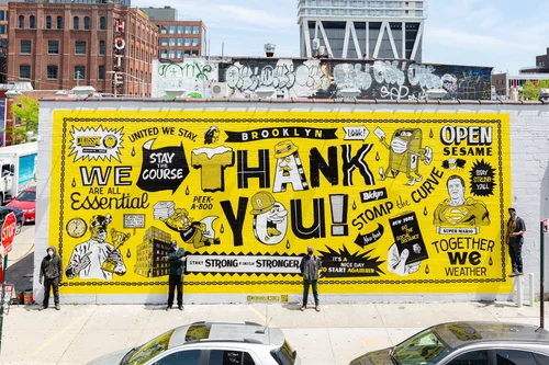 Healthcare workers healing the world, delivery men and women fueling everyone at home, buskers keeping the beat alive, teachers molding minds online, parents wrangling work and maniac kids, mask makers, hand sanitizer brewers (shout-out to AMASS who used our LA shop to make magic!), high school seniors celebrating their big days in new ways, Mario Salerno and every other landlord forgiving rents, Wythe Hotel opening their doors to hospital workers, USPS making mail move no matter what, mutual aid orgs holdin’ down communities, farmers sowing, reaping, and repeating, warehouse staff packing and shipping (and packing and shipping and…), transit workers, rideshare drivers, childcare providers, Jimmy’s Diner feeding our souls, sanitation still scrubbin’ our streets, Ronan Paints and their bountiful cans of pigment, therapists virtually easing our minds, scientists stating the facts, Cuomo‘s daily briefings, walldogs going hard in the paint, 7pm appreciation, Brooklyn, the world, tomorrow, YOU.