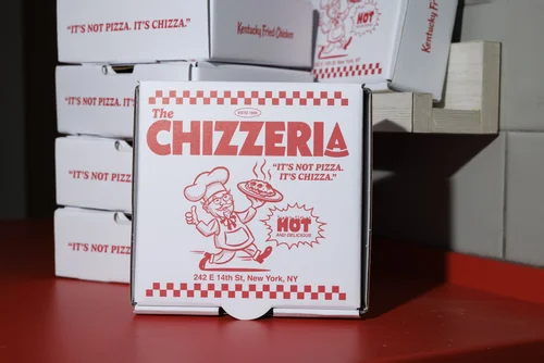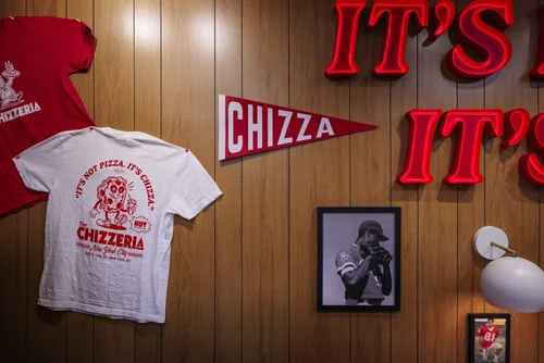 KFC and MullenLowe Morning Breath designed the graphic assets for the redesigned the exterior and interior of the store by adding details including neon signs and the quintessential celebrity wall that appears in many pizzerias. The restaurant exclusively served complimentary chizzas—two fried chicken filets topped with marinara sauce, mozzarella and pepperoni—along with beverage options from its partner, Pepsi.